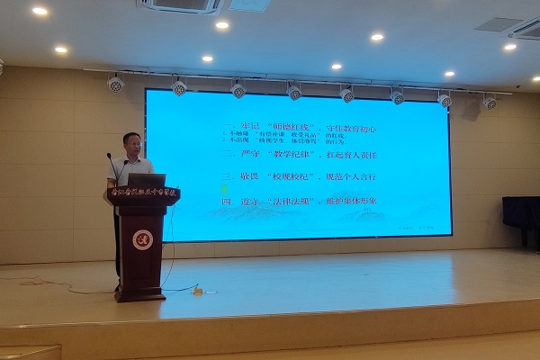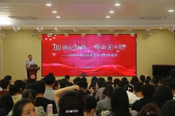 为深入贯彻中央八项规定精神学习教育,巩固拓展学习教育成果,常态化推进作风建设,9月26日下午,我校党总支在智慧报告厅开展“守耕讲堂——书记讲党课”活动,由党总支书记洪妈愿为全体教职工讲授《加强纪律性 革命无不胜》的专题党课。 |