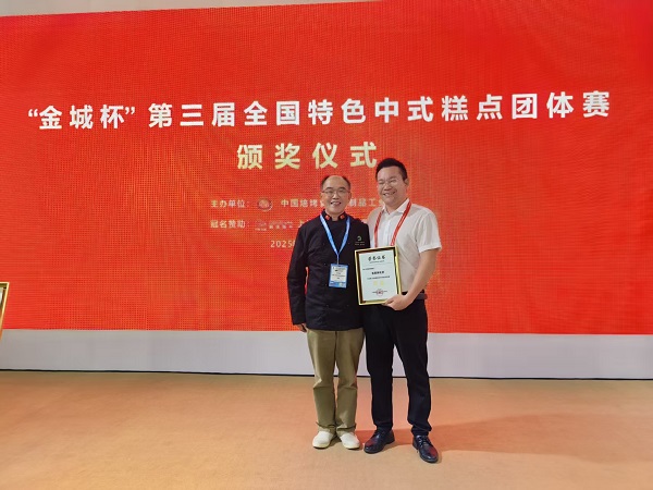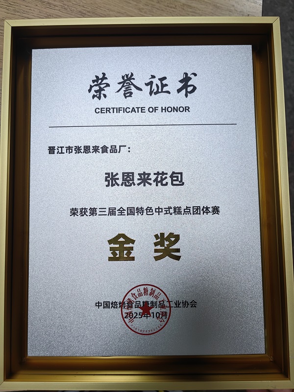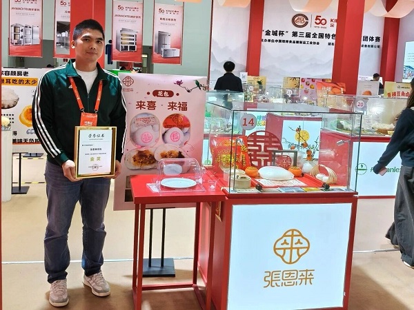 在10月16至19日举办的中国国际焙烤秋季展览会期间,“金城杯”第三届全国特色糕点团体赛结果揭晓。由我校周杨华老师提供技术支持的晋江市张恩来食品厂表现卓越,其参赛产品“张恩来花包”与“张恩来礼饼”从全国30家企业选送的46个特色产品中脱颖而出,双双荣获金奖。