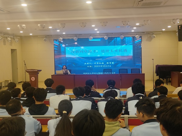 为帮助2025级网络技术专业新生深入了解专业前景、做好学业规划,我校近日在陶英校区报告厅举办专业认知讲座与分享会。计算机专业陈育瑜老师为新生系统介绍了专业课程与行业发展趋势,并邀请22级优秀毕业生分享成长经验,班主任许美玲老师也为新生答惑解疑,分享学习方法。