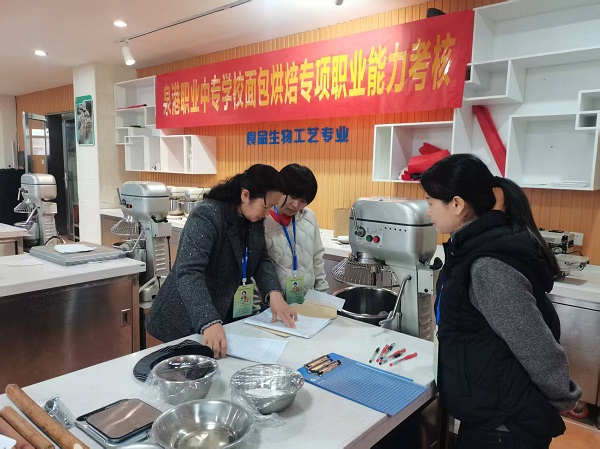 1月25日,我校技能鉴定站开展了面包烘焙专项能力考试,参加这次鉴定考试的人员为泉港职业中专学校近40名考生,技能鉴定是我校食品加工工艺专业群社会服务的一项重要内容,为了确保本次考试工作能顺利、安全、高效地开展,鉴定站、各处室以及食品教研组做了大量认真、细致的准备工作,鉴定工作的开展井然有序。