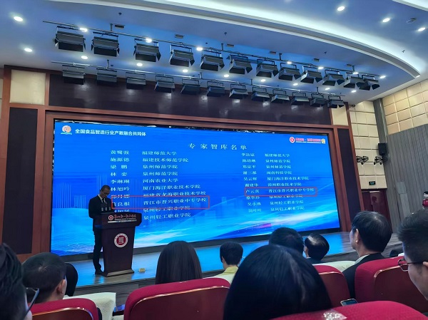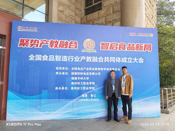 为深入贯彻落实国家关于深化现代职业教育体系建设改革的战略部署,推动食品工业数字化、智能化转型,3月29日,“全国食品智造行业产教融合共同体”成立大会在泉州轻工职业学院隆重举行。我校作为理事单位受邀参会,招生外联处主任蔡良根与食品专业教师周杨华代表学校参加会议。
