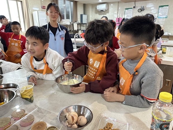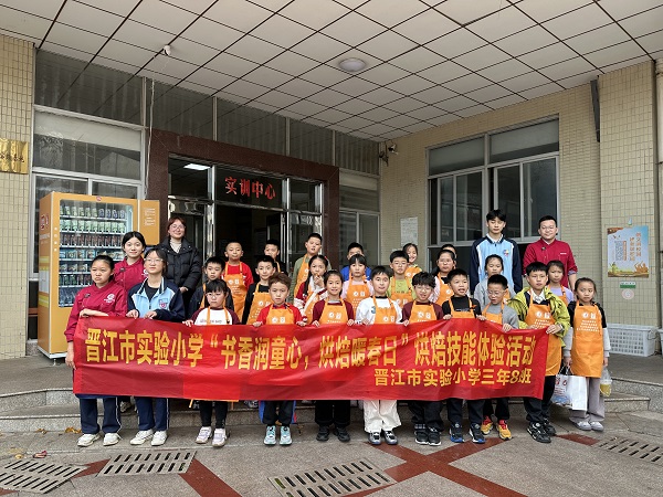 3月28日下午,晋江市实验小学三年八班 25 名同学走进我校食品工艺实训基地,参加 “书香润童心,烘焙暖春日” 烘焙技能体验活动。 在周杨华、陈燕梅两位老师及食品专业吴亿嘉等 4 名同学的指导下,孩子们亲手制作了创意杯子蛋糕、葡式蛋挞和百香果金桔柠檬饮品。活动现场,孩子们认真操作、互相协作,在劳动中感受烘焙乐趣,提升了动手实践能力。 本次活动是职普融通的一次生动实践,为小学生提供了宝贵的职业体验机会。